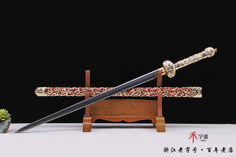 【作品规格】 全长:107cm左右,柄长:23cm,刃长:77cm,刃宽:3.6cm,刃厚:0.7cm,重量:不带鞘1.6kg左右,带鞘3.0kg左右。