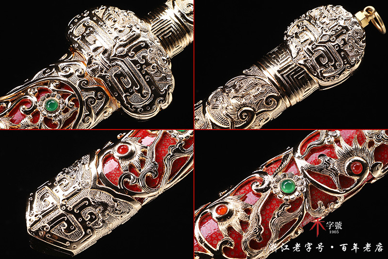 【作品鞘材】 名贵珍珠鱼皮+手工精细镀金铜装
