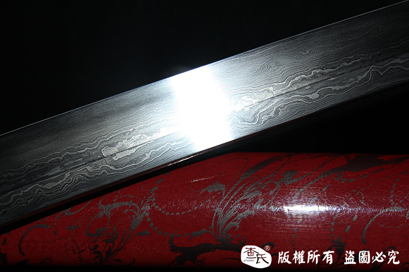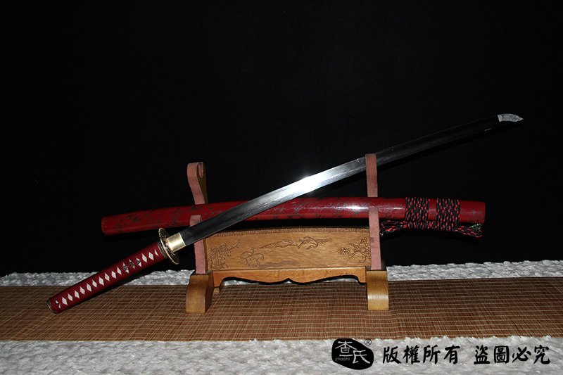 【作品规格】 全长:103cm左右,柄长:26cm,刃长:72cm,刃宽:3.2cm,刃厚:0.7cm,重量:不带鞘1.0kg左右,带鞘1.2kg左右。