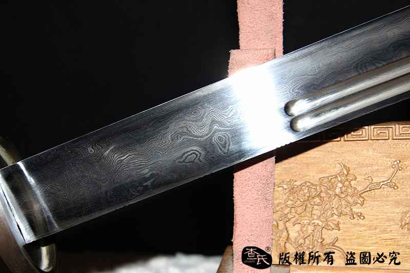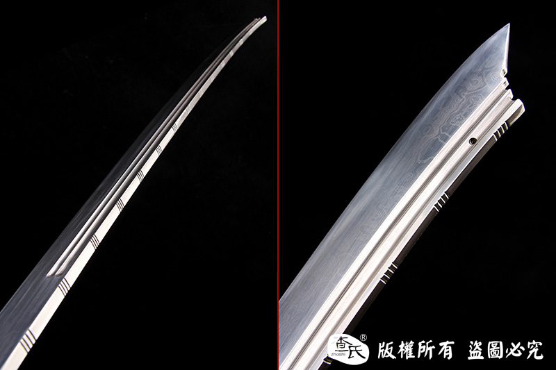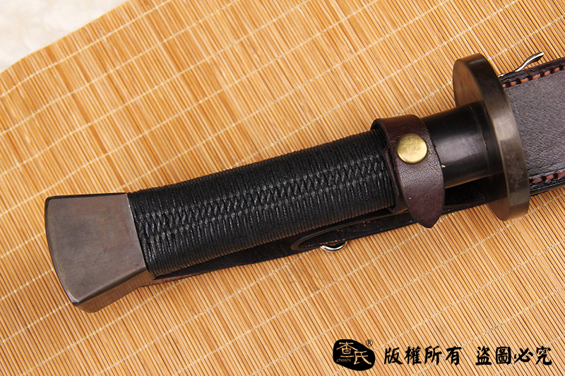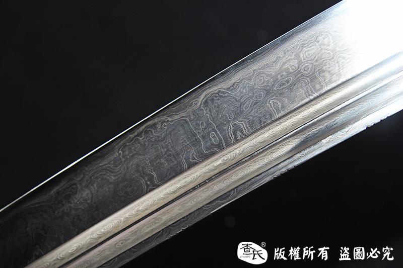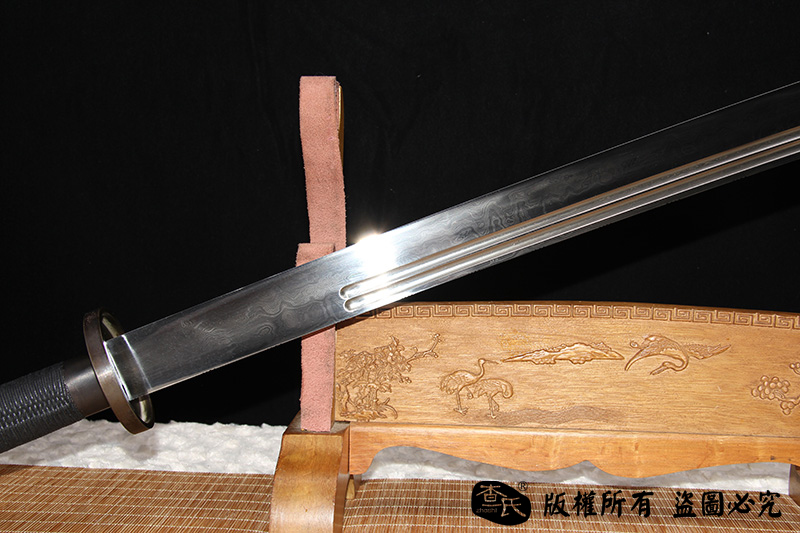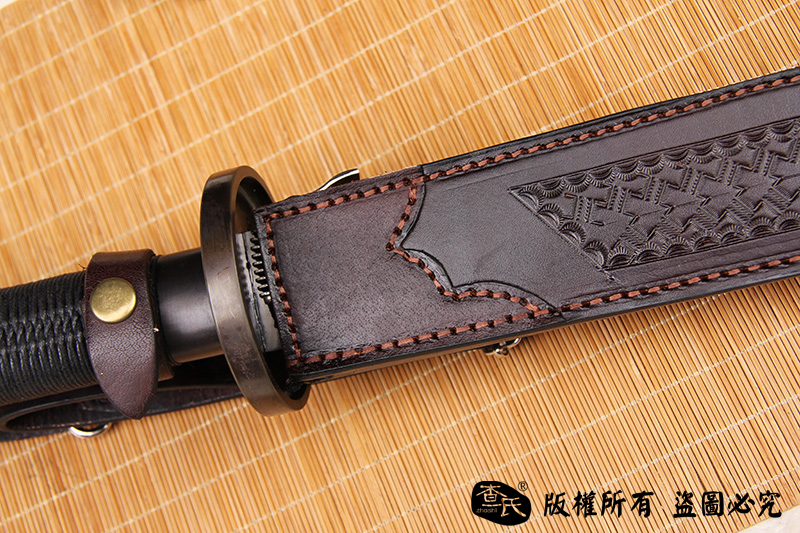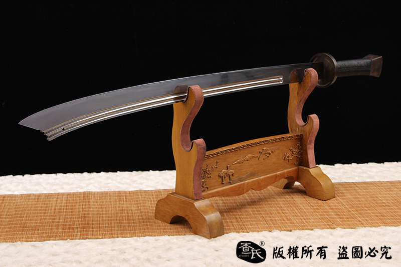 【作品规格】 全长:101cm左右,柄长:20cm,刃长:77cm,刃宽:5.4cm,刃厚:0.8cm,重量:不带鞘1.6kg左右,带鞘2.1kg左右。