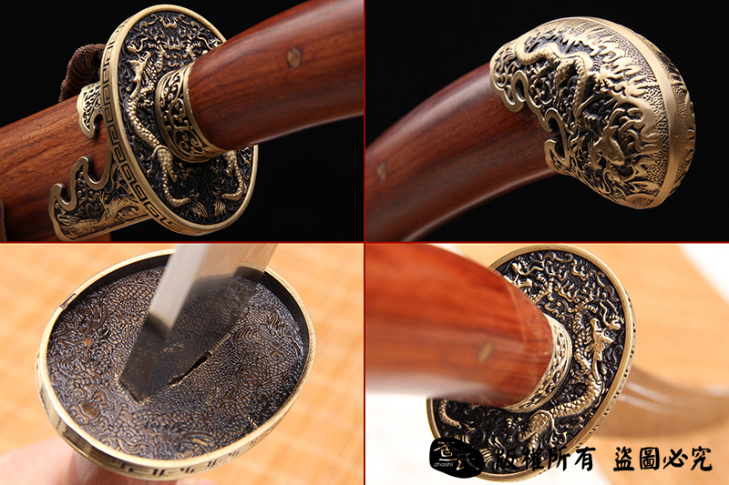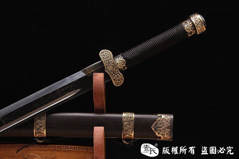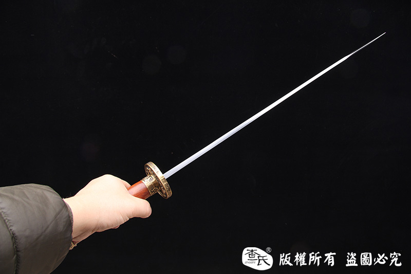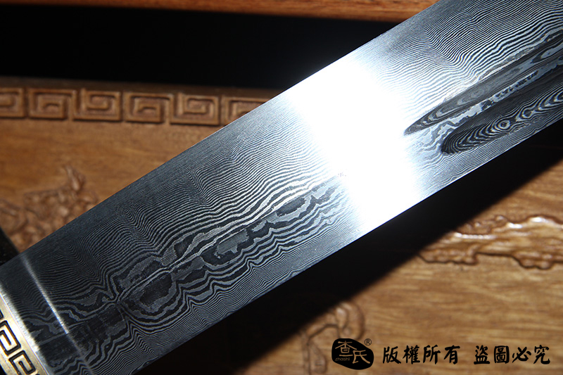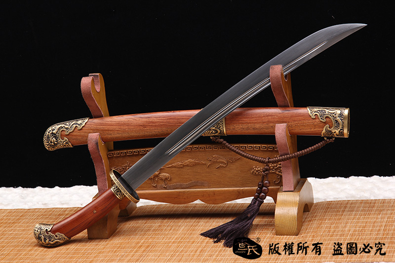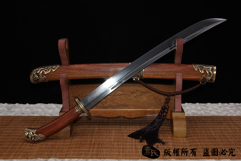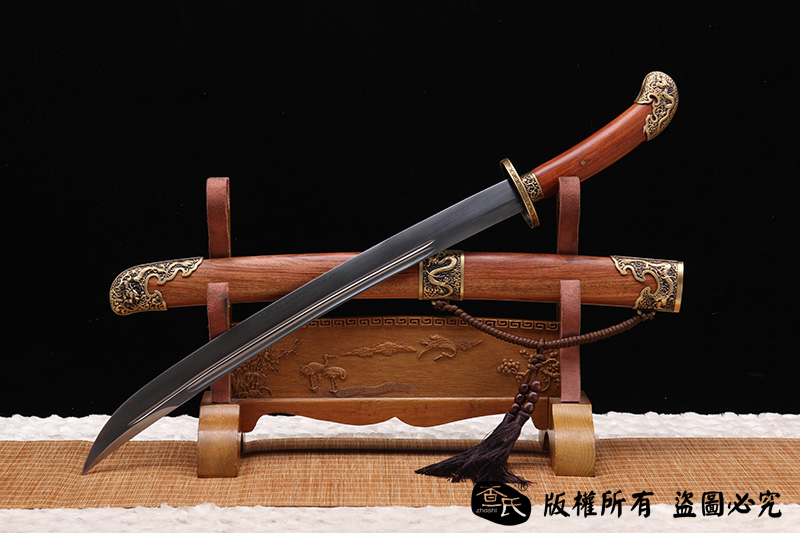 【作品规格】 全长:75cm左右,柄长:18cm,刃长:51cm,刃宽:3.6cm,刃厚:0.8cm,重量:不带鞘0.9kg左右,带鞘1.6kg左右。