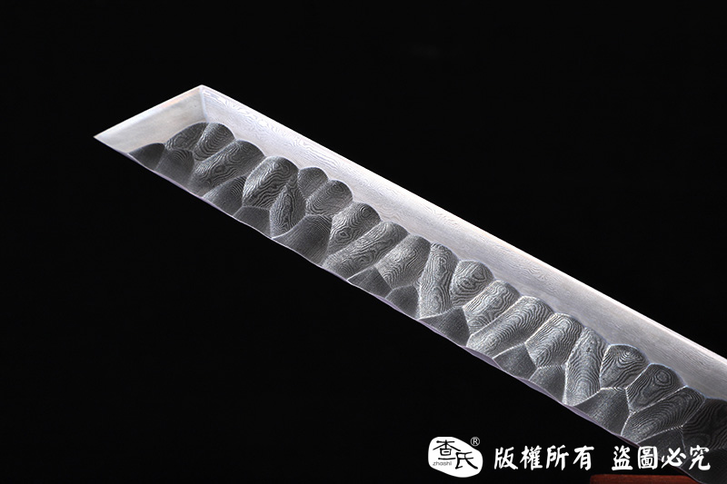 【作品规格】 全长:52cm左右,柄长:16cm,刃长:32cm,刃宽:3.0cm,刃厚:0.8cm,重量:不带鞘0.8kg左右,带鞘1.1kg左右。