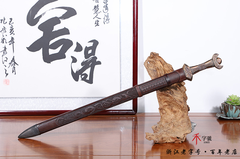 【作品规格】 全长:91cm左右,柄长:13cm,刃长:69cm,刃宽:4cm,刃厚:0.8cm,重量:不带鞘1.8kg左右,带鞘2.2kg左右。