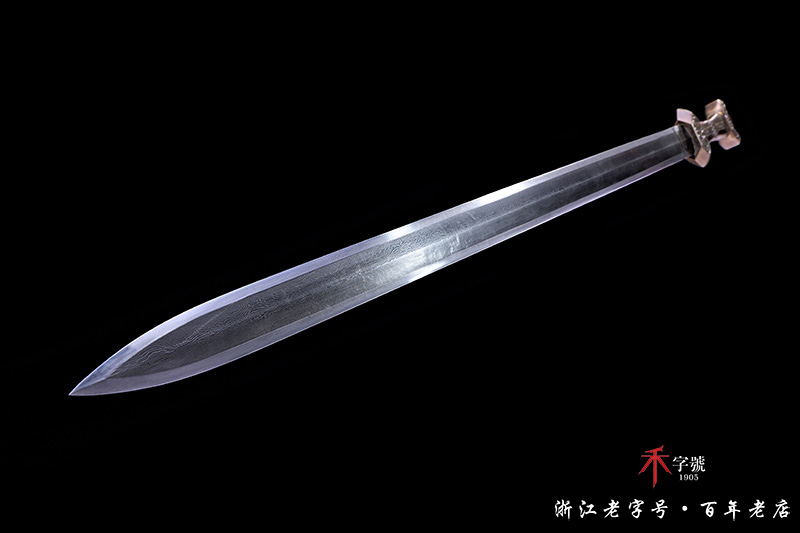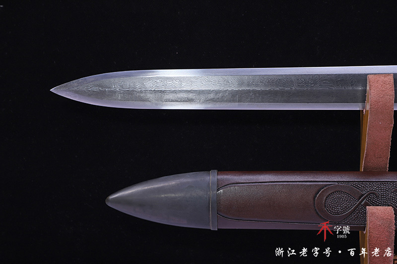 【刃材工艺】 手工锻造大马士革剑刃,古法热处理,手工精细磨+双色研磨,根部刻字:查长伟制
