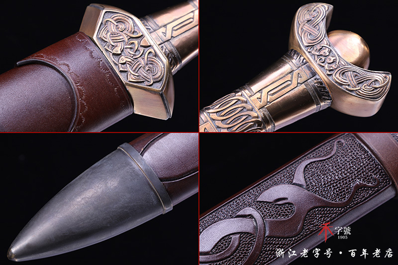 【作品鞘材】 进口牛皮皮雕+木芯鞘