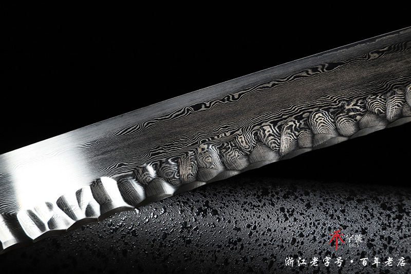 【刃材工艺】 百炼花纹钢手工打造,手工雕刻石纹,古法热处理,手工精细磨