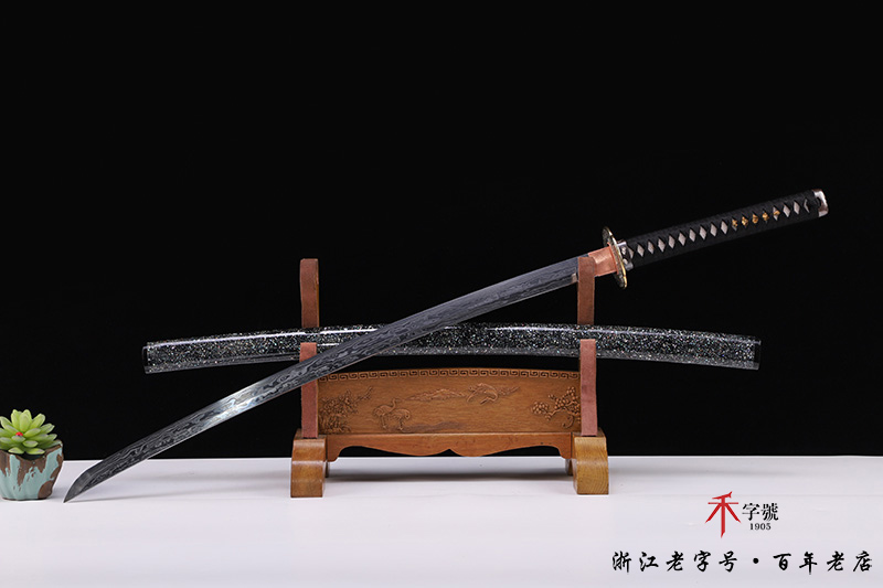 【作品规格】 全长:103cm左右,柄长:26cm,刃长:72cm,刃宽:3.2cm,刃厚:0.8cm,重量:不带鞘1.1kg左右,带鞘1.4kg左右。
