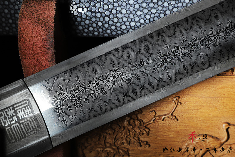 【刃材工艺】 禾字号古法手工打造龙鳞纹,古法手工热处理,手工精细磨,成色漂亮,根部刻字:查长伟制