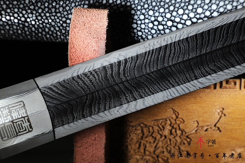 【作品规格】 全长:106cm左右,柄长:26cm,刃长:77cm,刃宽:3.5cm,刃厚:0.7cm,重量:不带鞘1.2kg左右,带鞘1.7kg左右。
